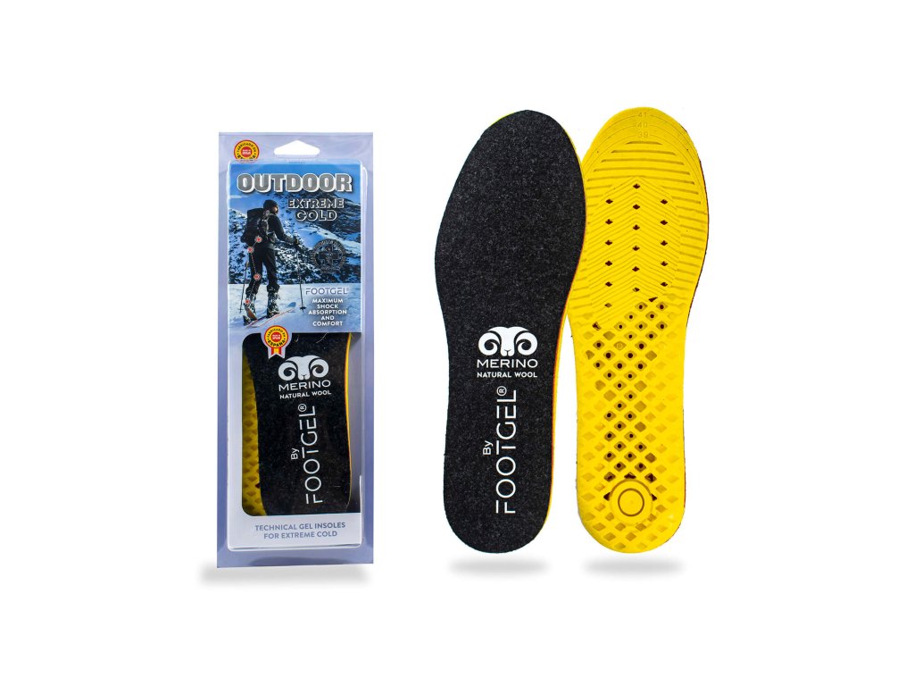 Gelové vložky FOOTGEL OUTDOOR EXTREME COLD jsou vyvinuty pro zimní použití v pevné outdoorové obuvi, kde je klíčová kombinace tepelného komfortu, tlumení nárazů a ochrany kloubů.