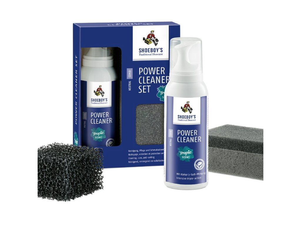 POWER CLEANER SET je kompletní sada pro šetrné a efektivní čištění obuvi i textilu. Díky trojímu účinku – čistí, vyživuje a impregnuje – se hodí na širokou škálu materiálů: