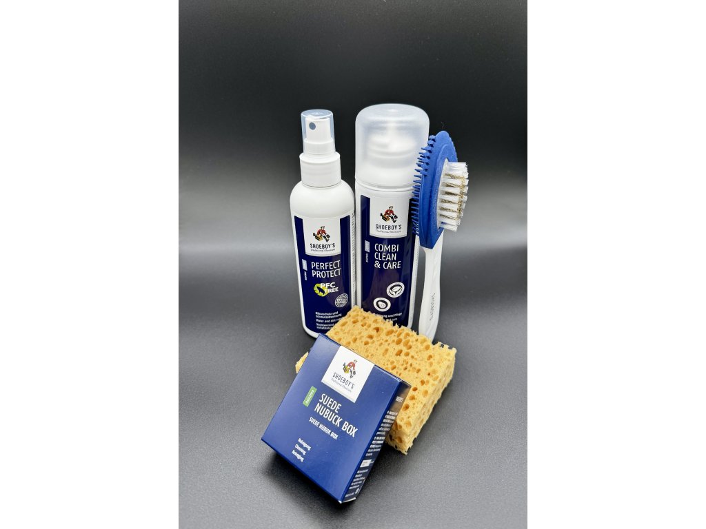Kompletní sada pro péči o nubukovou obuv, která zajistí důkladné čištění, regeneraci a dlouhotrvající ochranu.